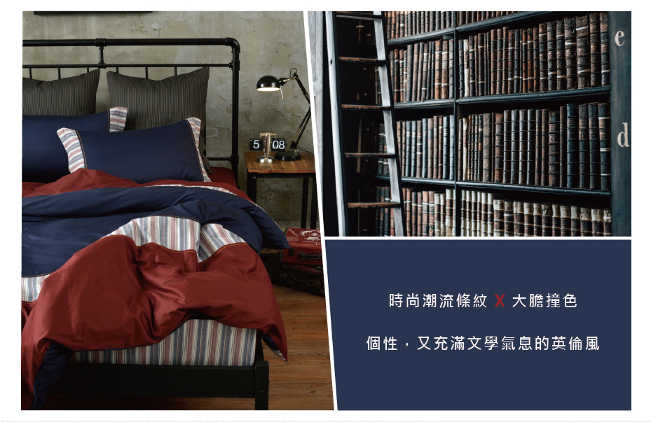 ☛經典潮流的條紋,紅、藍大膽撞色,個性又帶有文藝氣息