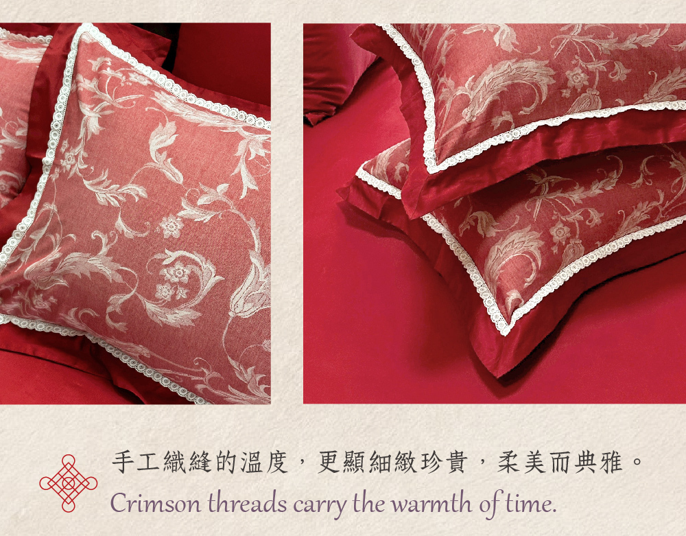 【色織緹花】紅霞戀語 / 素色床包 / 100%高級精梳棉 / 紅色