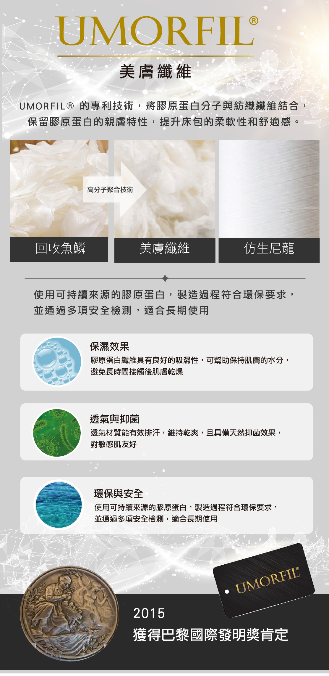 ✔ 奈米級膠原蛋白布料,柔嫩親膚,睡眠同時保養肌膚