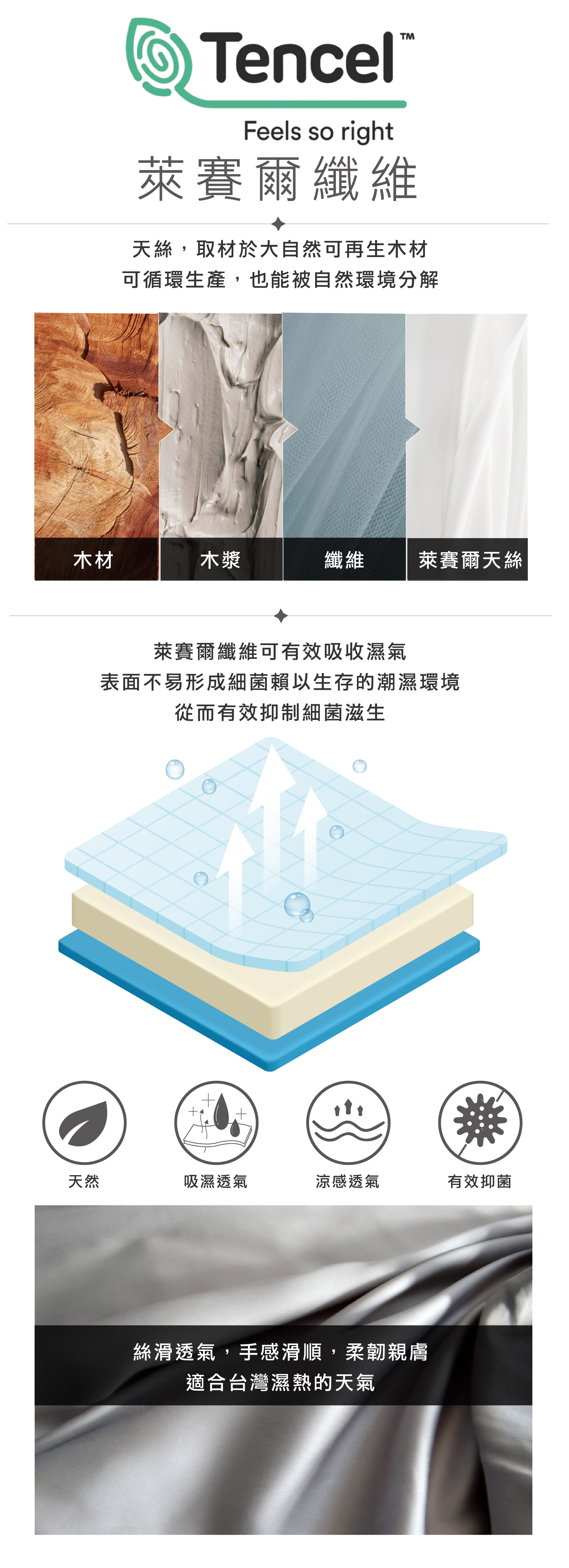 面布: 100%萊賽爾天絲 底布: 30%萊賽爾(天絲) 70%縲縈(天樞)