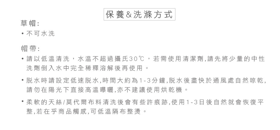 ☛細膩車縫及獨家花色的帽帶,讓您擁有高質感的配件