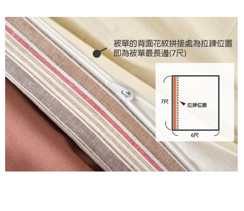 ☛貼心又不失質感的標示設計,被單拉鍊位置及床包方向