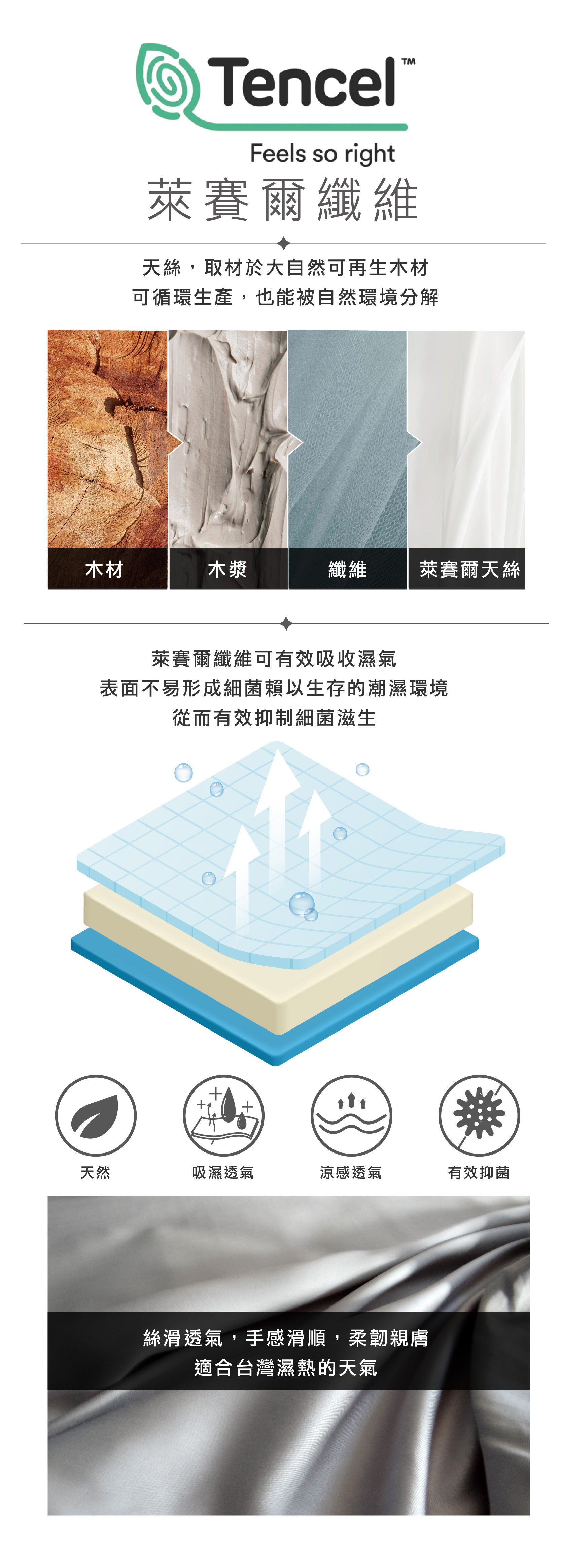 素色布:100%天絲萊賽爾纖維(60支)