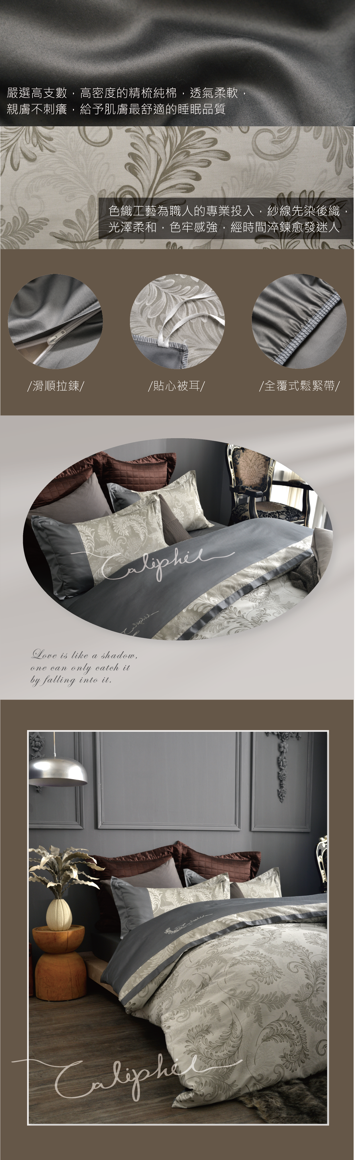 素色裡布: 100%高織高密精梳棉(60支棉)