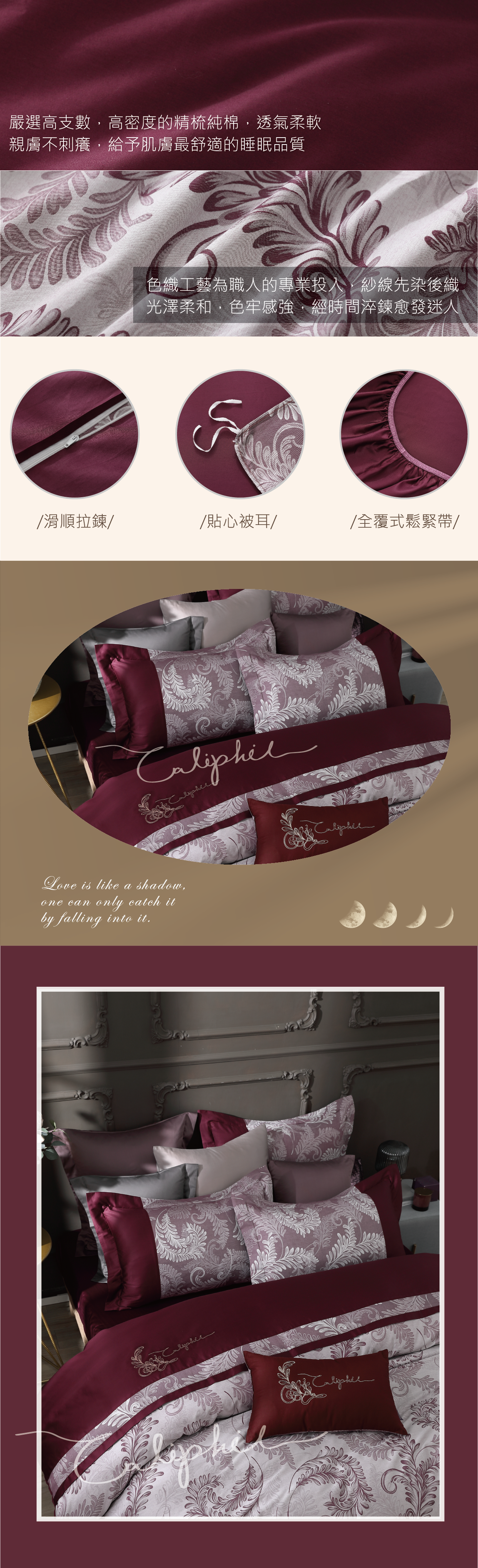 素色裡布: 100%高織高密精梳棉(60支棉)